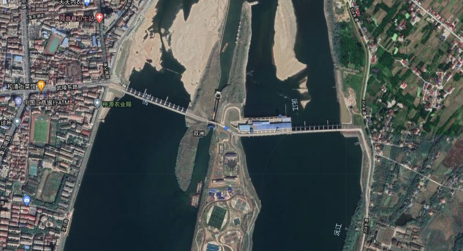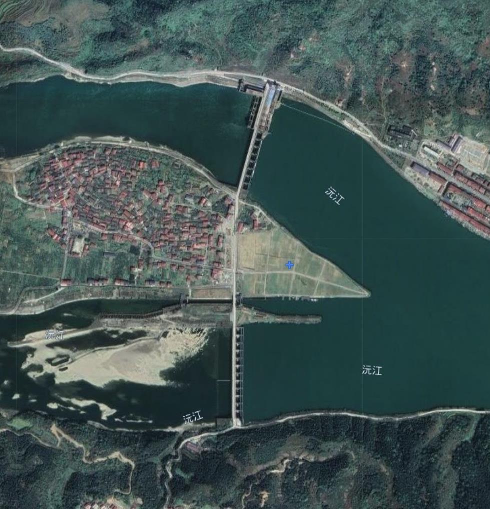 该水电站利用了沅江江心的岛屿,在岛屿分叉的两条江面上都建设了大坝,有效地拦蓄了来水。江心的岛屿上还有不少居民居住,开垦了不少的农田,形成了一个自然的村落。大坝的建设也是方便了岛上居民的出行。相当于建设了两座桥梁,连接江心岛和沅江两岸。岛上的居民如果能去水电站工作也是不错的,通勤可以靠步行。