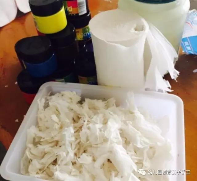 1.首先,将纸巾撕碎,然后放进装有水的容器里,注意,水不需要太多,刚越过纸巾就可以了!