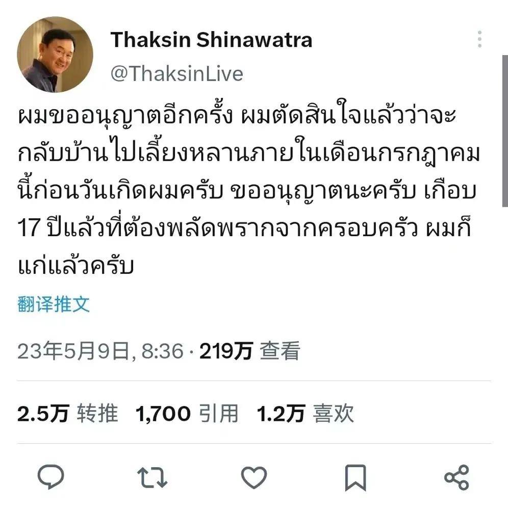 时间来到现在,他信的亲生女儿佩通坦成为 为泰党 党首,竞逐新一任泰国总理的宝座。他信在这个节骨眼上宣布回国,自然引起了很多人的猜测,早在5月1日的时候,他信就在社交媒体分享了女儿产子的喜讯,期望回国与儿孙们见面。