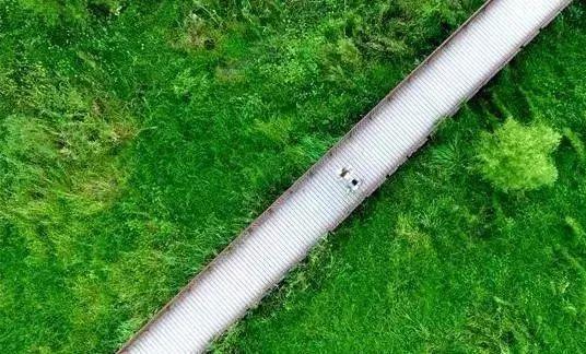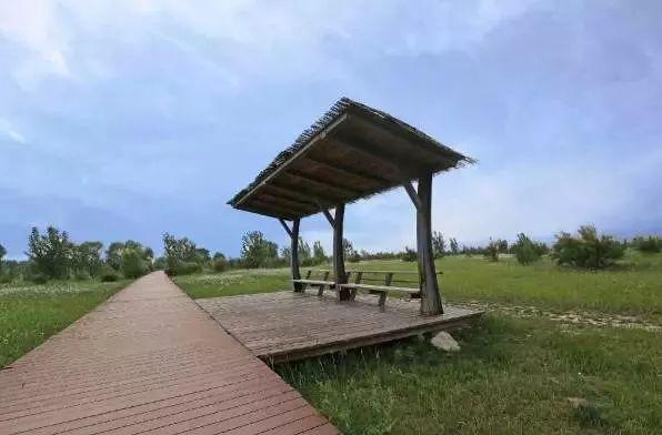 选择一条线路进入原生态的黄河湿地腹地,一条弯曲的长廊时隐时现,除了有水的地方有栏杆外,其余长廊都没有护栏,不时有小草的叶子从长廊步道缝隙中露头,轻触人腿。整个长廊没有刻意去雕饰,两侧是一眼望不到边的青草疯长的滩地,极尽自然。