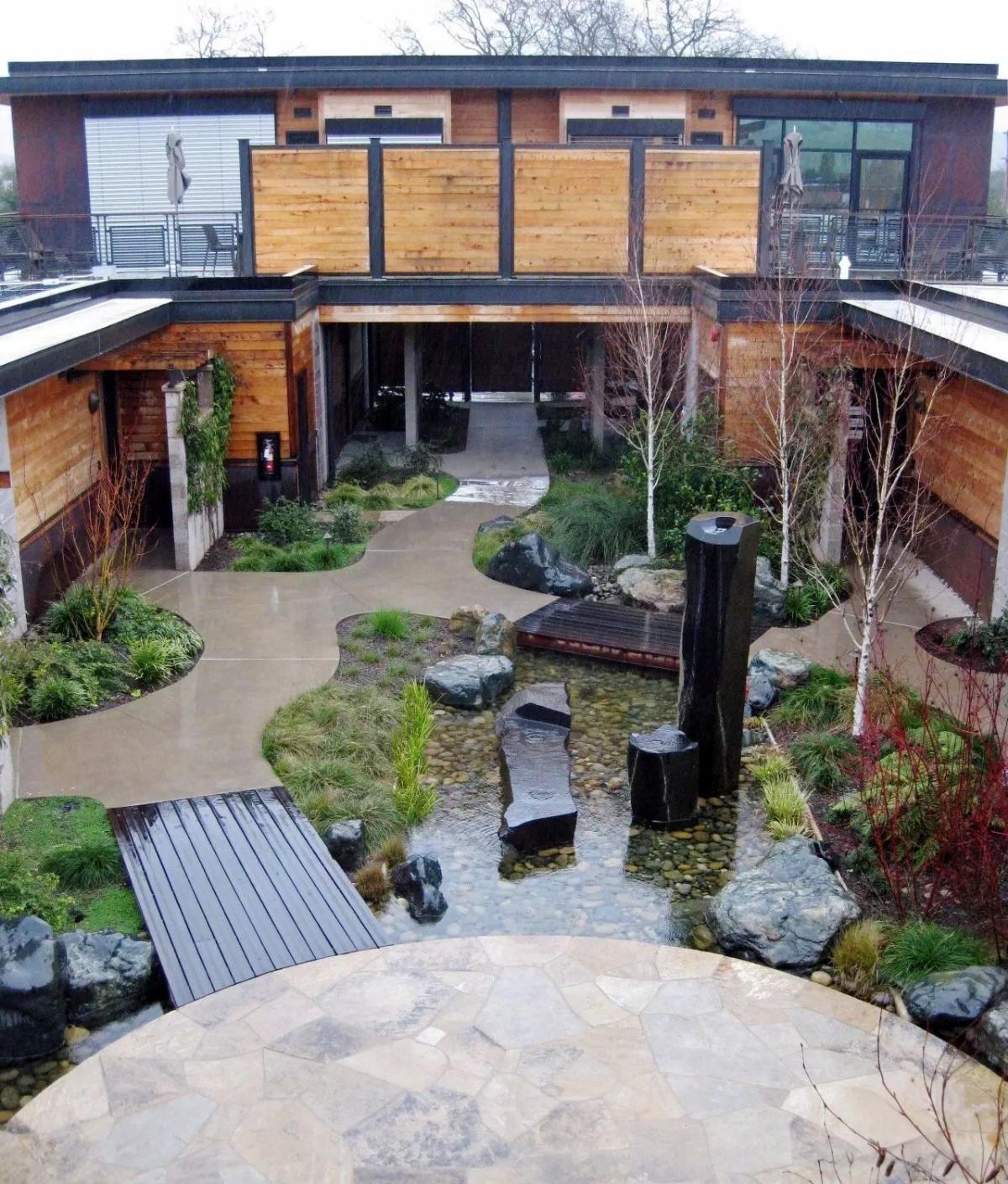 以简洁的线条、简便的维护和易于养护的造型植物为特色,结合大胆的几何造型、光滑的质地和简洁的植被,来创造富有戏剧性结构和特性的庭园。显得简洁、抽象迷人、富有戏剧性。在现代庭院里“少”就是“多”,运用“留白”来强调景观和焦点,对空间的分割来突出焦点和形成对比。