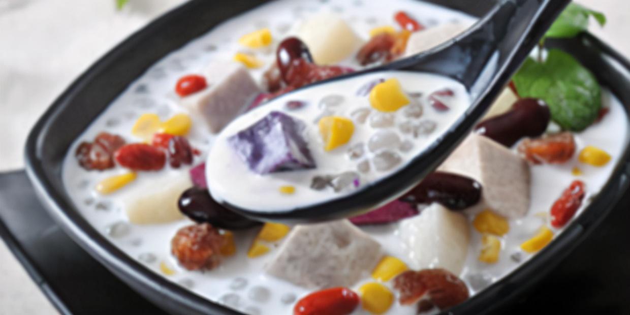 海南清补凉是一道美味可口的汉族名点,属于海南菜。作为风靡热带海南岛的特色冰爽甜品,传统的海南清补凉主要是以红豆(绿豆)、薏米、、花生、空心粉等做成,放置冷却或加入冰块后及成为一碗正宗的海南清补凉。