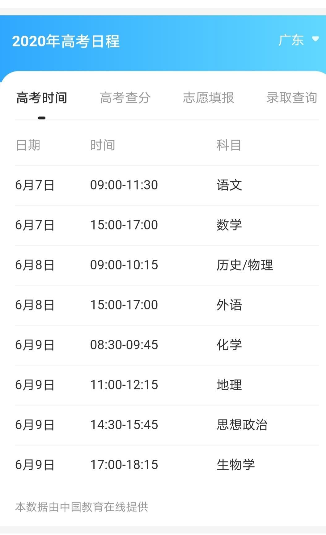 2020年高考科目安排
