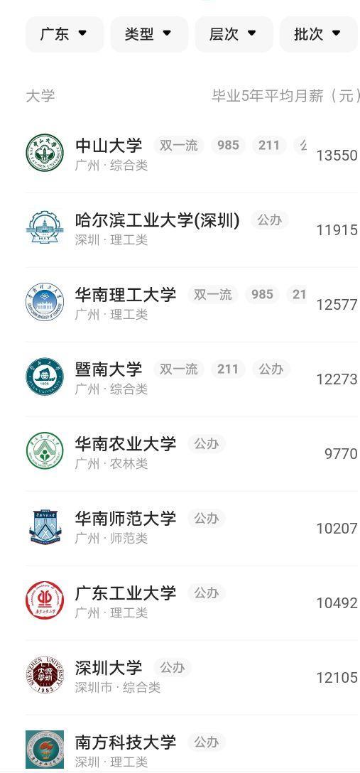 广东各大学排行榜