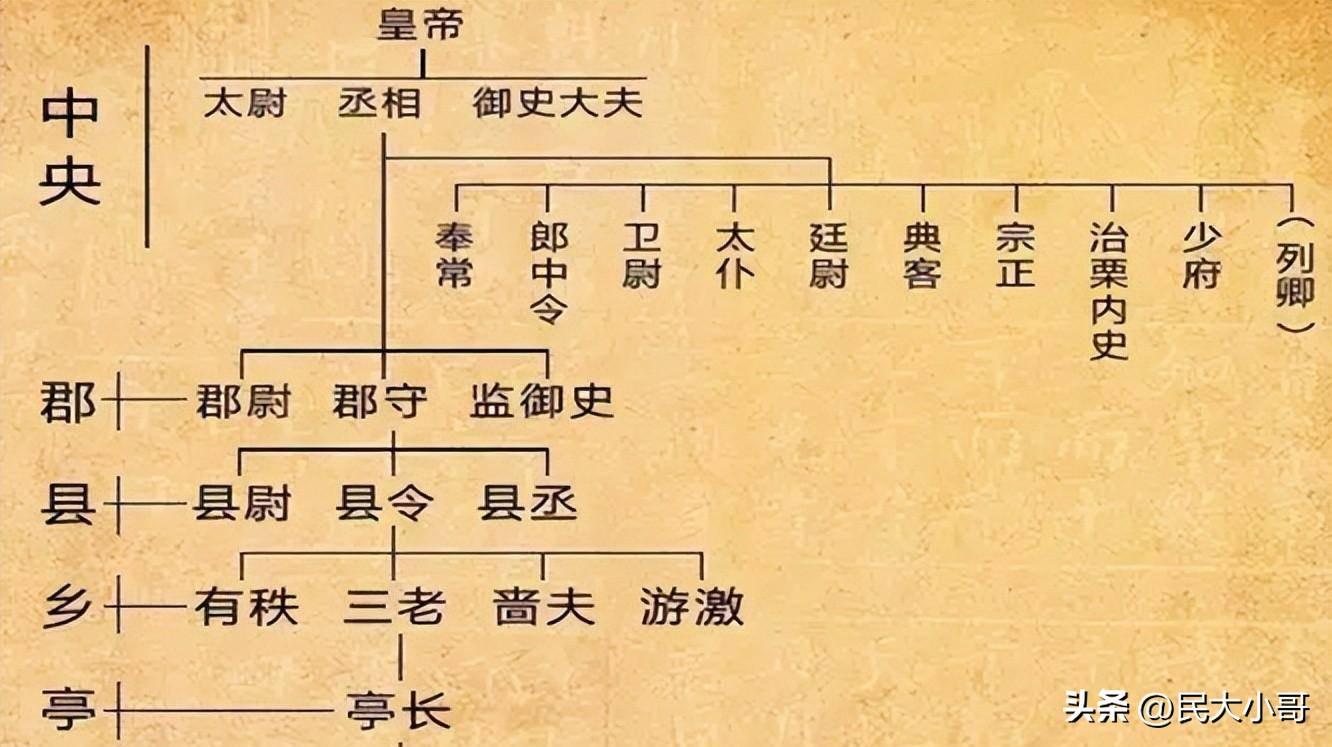 三公九卿制:汉承秦制,置一丞相,十一国更名相国。汉惠帝、吕后时期分为左右丞相,汉文帝二年复置一丞相,掌丞天子助理万机。在想的具体权力分为五个方面:选股安全、督察百官并有一定的执法权、上计考课权、总领朝议与奏事权、封驳与谏诤权。汉武帝时期,为加强皇权、弱化相权,设立内朝逐步对相权进行削弱,但内朝根源于皇权的巨大依附性,脱离皇帝领导,不能作为一个独立的权力机构存在,宰相不得过问内朝事务,使得内朝成为政权内部一个相对于外朝的独立单位。除丞相制度外,太尉、御史大夫,分别掌管军事、政务和监察,与丞相统称为“三公”,三公之下,设有掌管国家军政和宫廷事务的“九卿”。地方行政机构,除沿袭秦朝郡县制外,汉初还分封诸侯王,形成郡国交错局面。