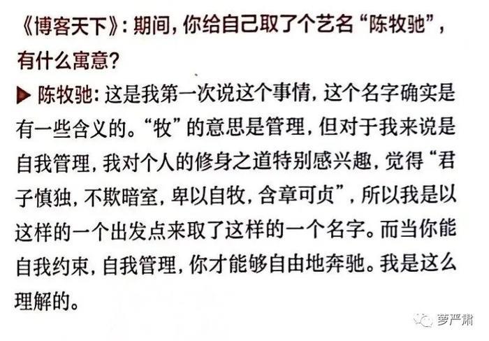 一个不负责任的猜想,原名陈海亮的陈牧驰讲过改名的原因和名字的意思,这名字连带解释,应该都是前妻想的吧。现在网传陈牧驰和罗某结婚登记是2020年3月,同年5月前妻生日时,陈牧驰官宣改名。