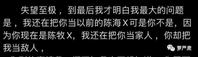 (这里需要再提醒一下之前吴楚一爆料中陈述自己的付出:租房子都是自己出钱,陈牧驰没给房租;带他面试、借钱给他看病、他生病了喂吃饭。)
