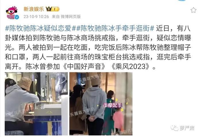 最早是10月9日陈牧驰被拍到陈冰谈恋爱。