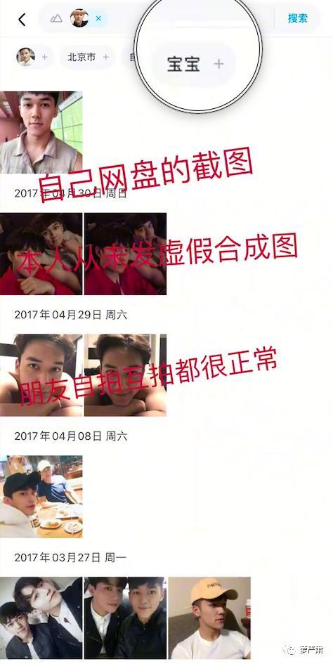 吴楚一晒自己网盘图片,说自己拍的陈牧驰照片是真的,网传有些二人亲密合影是假的。——八卦群众的理解:那你确实给他拍很多亲密的照片啊?你网盘里都是你和陈牧驰的合影?陈牧驰的标签还是宝宝?(陈牧驰粉丝解释:网盘会乱给照片加标签。)