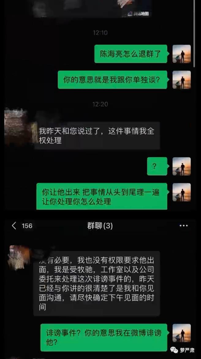 10月17日晚间,吴楚一忽然发布录屏,称要“为自己发声”。他震怒的主要原因是,当自己天天挂热搜,隐私被扒的时候,陈牧驰不再回自己信息,拉了个有律师的群,陈牧驰退群了。