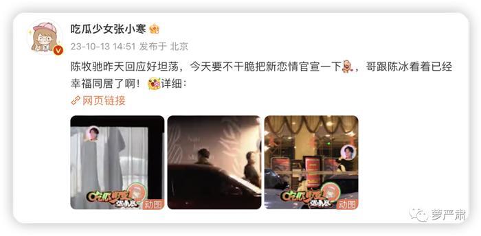 陈牧驰承认结过婚之后,隔天张小寒直接公布陈牧驰陈冰同居画面。