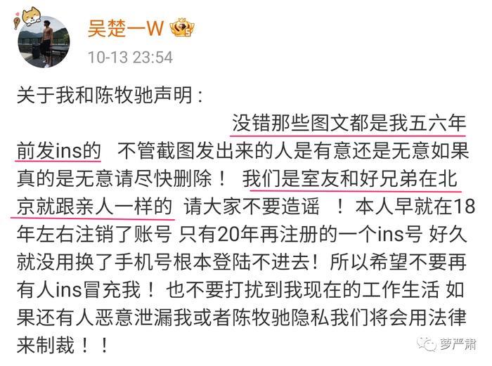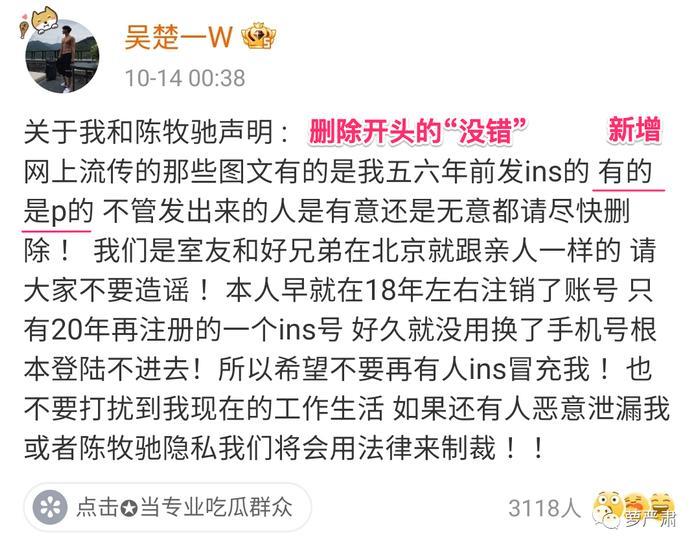 没想到的是当天晚上吴楚一自己出面澄清。