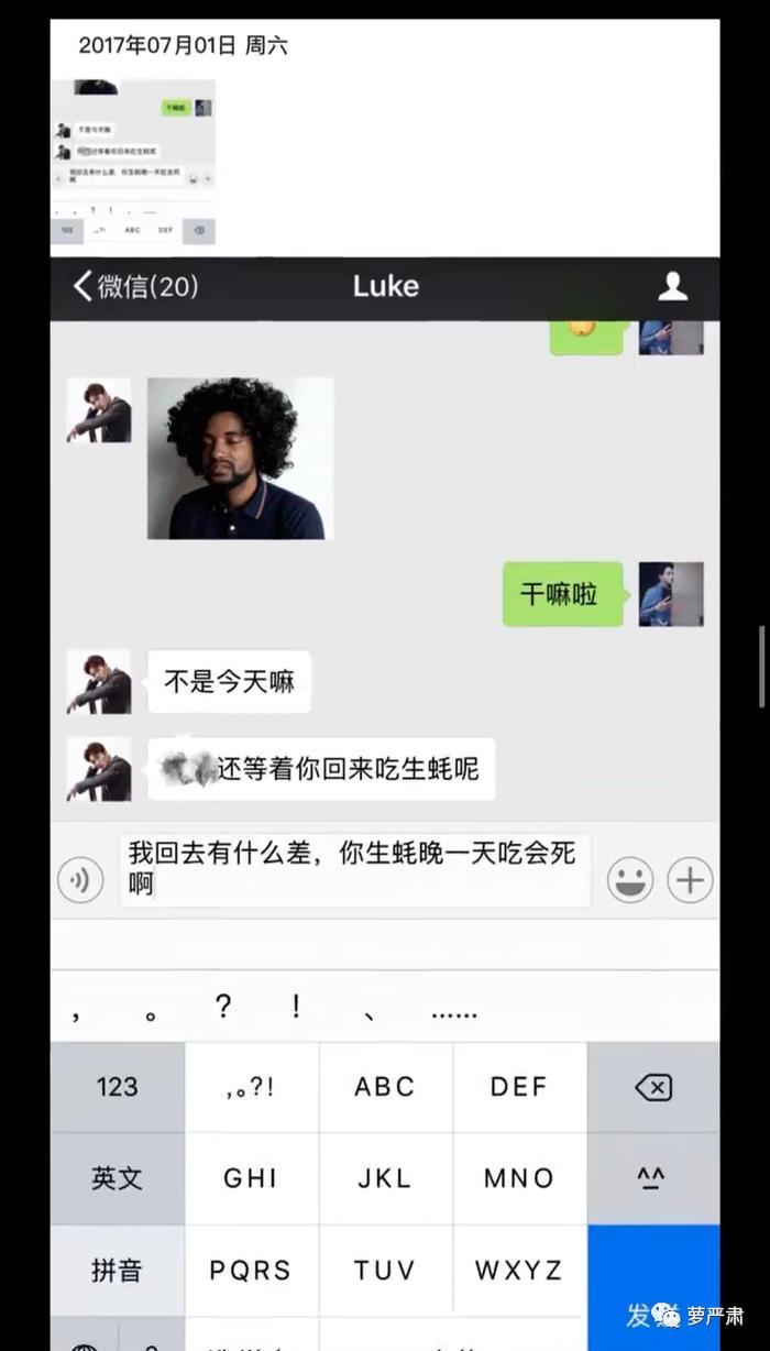 另一个推断他“自导自演”的证据也出现了:吴楚一聊天中、和爆料博中,打出的“ins”都是“in's”。