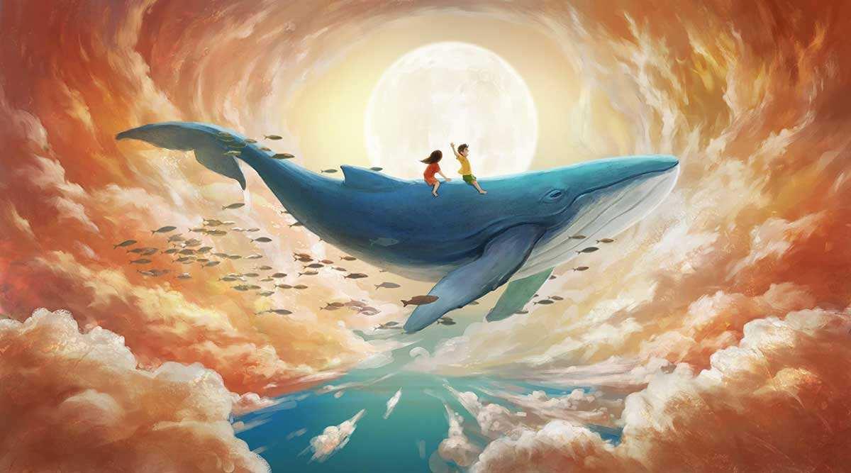 北冥有鱼,其名为鲲。鲲之大,不知其几千里也。化而为鸟,其名为鹏。鹏之背,不知其几千里也,怒而飞,其翼若垂天之云。是鸟也,海运则将徙于南冥。南冥者,天池也。