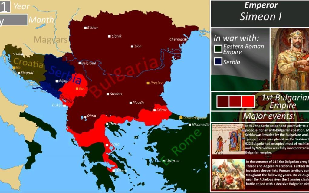 公元927年西美昂一世大帝死后,保加利亚国势急转直下。诸大贵族和封建主们不再听从国王号令,四处分裂割据,外又有拜占庭等强国觊觎,不断蚕食保加利亚疆土。终于在公元1018年,保加利亚第一帝国被拜占庭所灭......