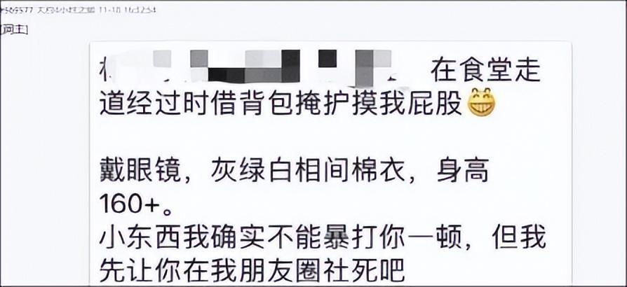 她怀疑是身后的男生咸猪手,于是把男生的个人信息发在了朋友圈。