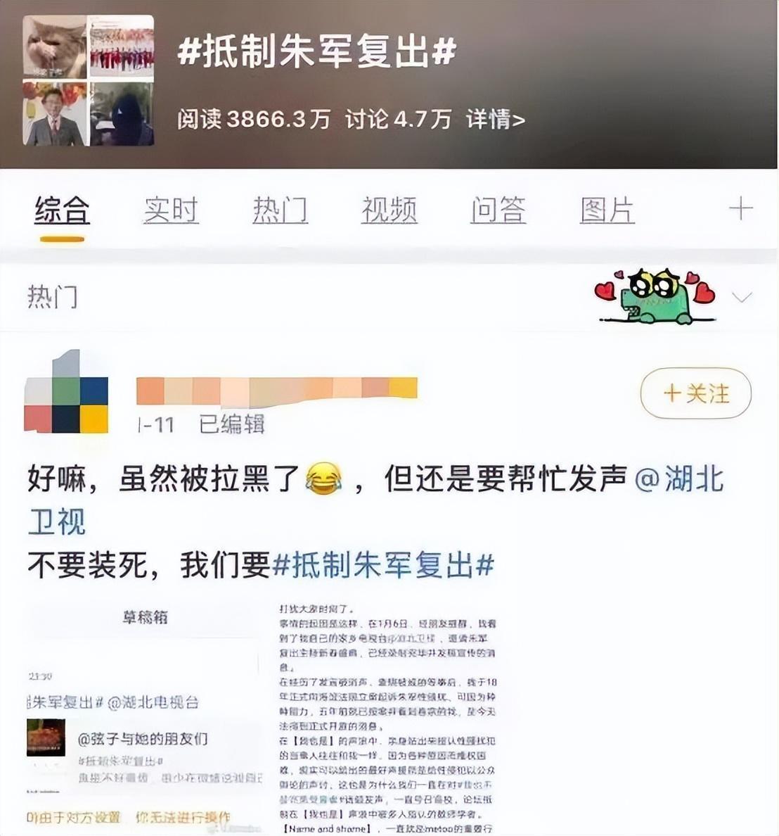 抵制朱军复出。