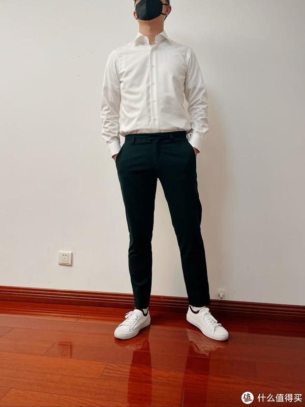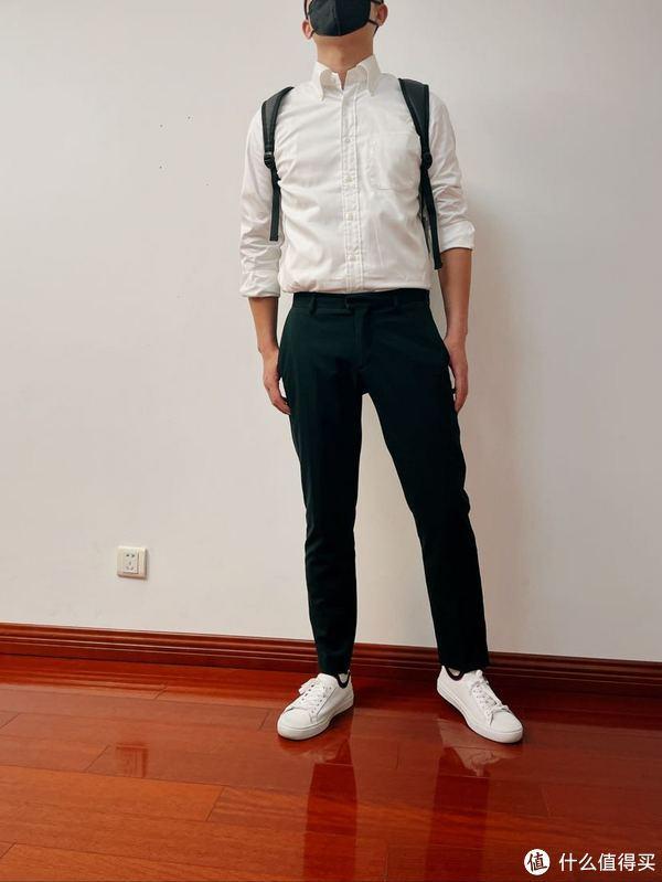 着装方面也不能太过休闲随意,所以一件非正式的白衬衫+休闲裤+球鞋是最好不过的选择。