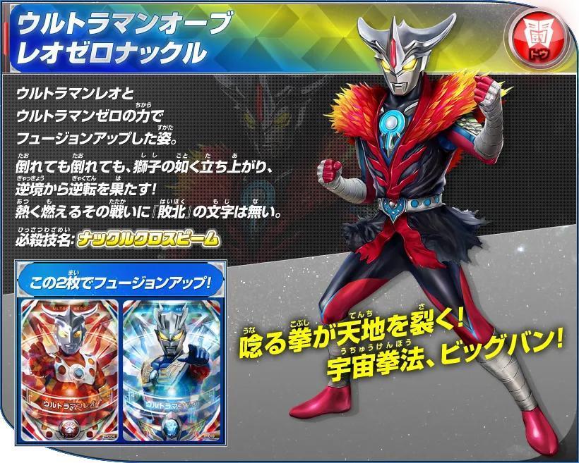 用雷欧·奥特曼和赛罗·奥特曼的力量融合升级的姿态,不管被打倒几次,也会像狮子一样站起来,在逆境中完成逆转!燃烧的火热战斗中没有失败二字。