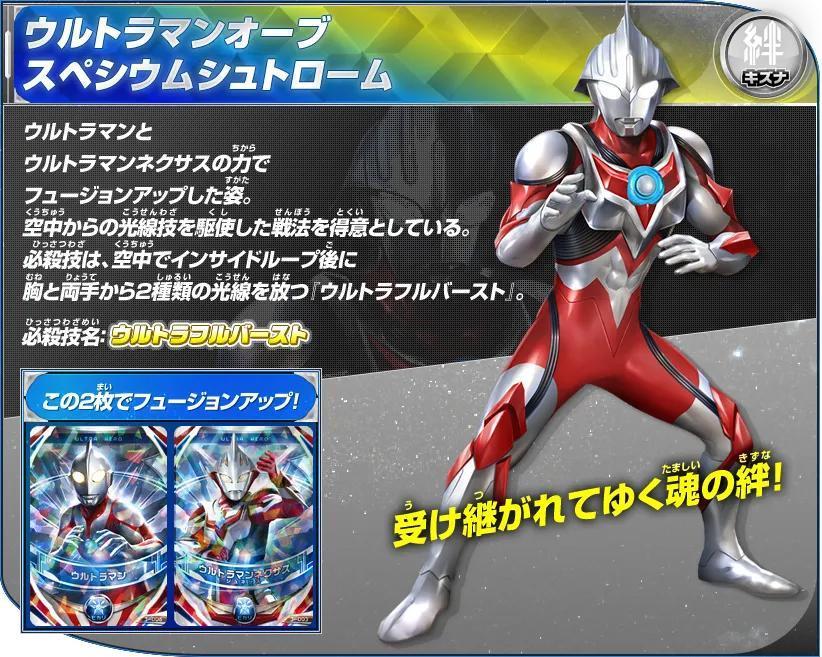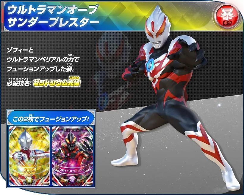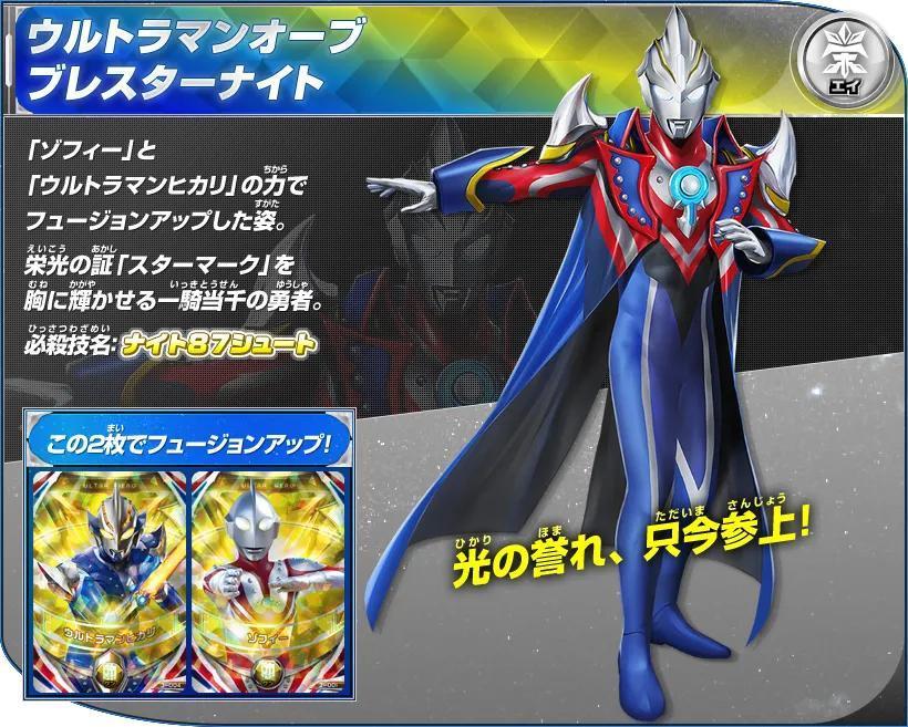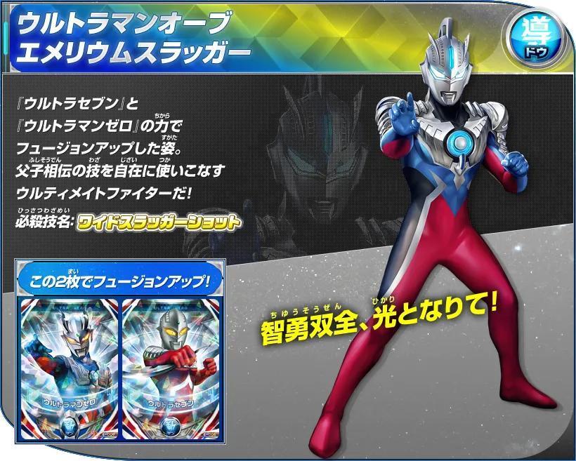 用赛文奥特曼和赛罗奥特曼的力量融合升级的形态。自如的使用父子相传的技能!《奥特格斗欧布》中作为主角形态登场。