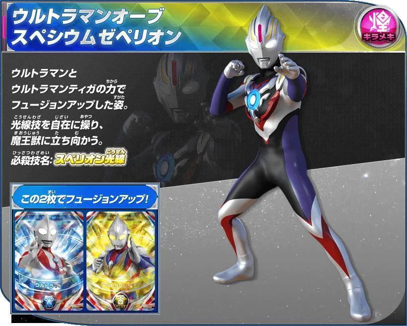 奥特曼和迪迦奥特曼的卡片双重读取后融合升级的姿态,擅长使用来自奥特曼和迪迦的丰富的光线技以及超能力。