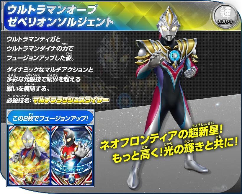 用迪迦·奥特曼和戴拿·奥特曼的力量融合升级的姿态。以多样的光线技能超越自身的极限而展开战斗。