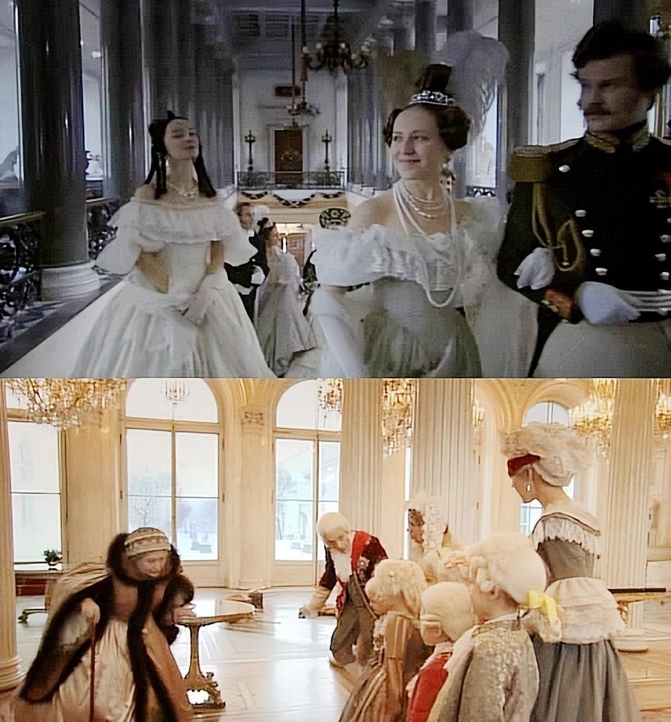 灯光与色调:《俄罗斯方舟》运用了精心设计的灯光和色调来营造出不同场景的氛围。从明亮的宫殿大厅到暗淡的走廊,从寒冷的冬日到暖阳下的花园,每个场景都通过灯光和色彩的变化来塑造特定的情感和观感效果。