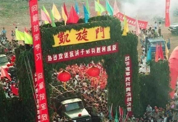 这个感人的画面被记者给拍了下来。当这张照片传到人民的视线里的时候,非常令人感动,我们不知道董将军那个时刻想到了什么,又有着怎样的心情。可总觉得他在挥别的不仅仅是坐车离开的抗洪官兵,还有那些永远留在长江中的人民子弟兵。这张照片让国人感受到了当时众志成城,与大堤共存亡的决心,向我们国家的人民子弟兵人民子弟兵致敬!在9月15日的那天,大清晨就有近十万的群众聚到“凯旋门”来给准备班师回营的子弟兵们送行。