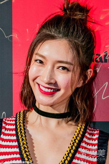 像江疏影一样,用八字刘海搭今年超火的半丸子头,时尚与卖萌两不误。