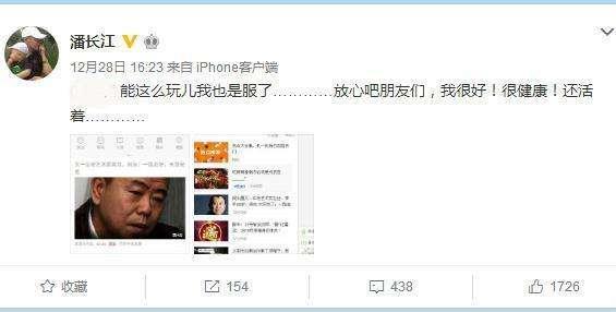 潘长江称:“能这么玩儿我也是服了…………放心吧朋友们,我很好!很健康!还活着…………”
