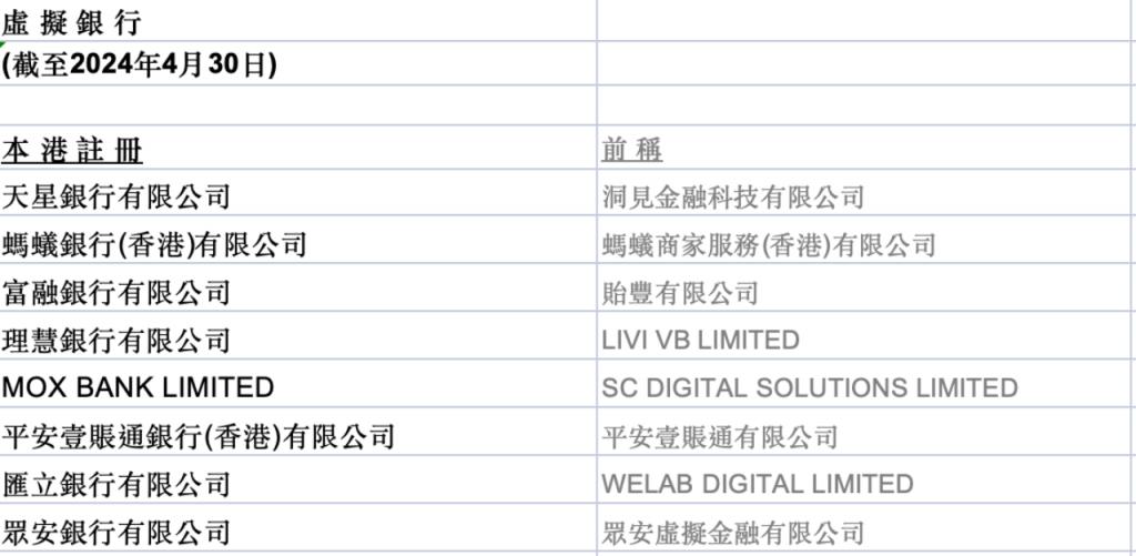 5 月 6 日,香港金融管理局(简称 " 香港金管局 ")宣布,计划将 " 虚拟银行 " 的名称更改为 " 持牌数字银行 ",并已启动为期一个月的咨询期。此次更名建议涉及与香港银行公会、持有限制牌照的银行及接受存款公司公会进行磋商,同时也会听取 8 家现有的虚拟银行的意见。