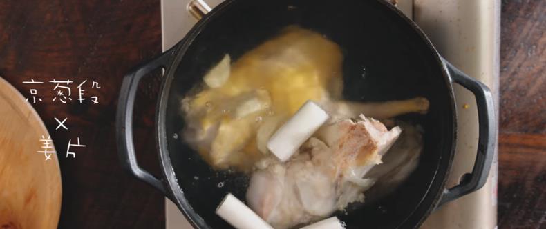 放入切好的姜片和京葱段之后就可以盖上盖子小火炖5小时了。