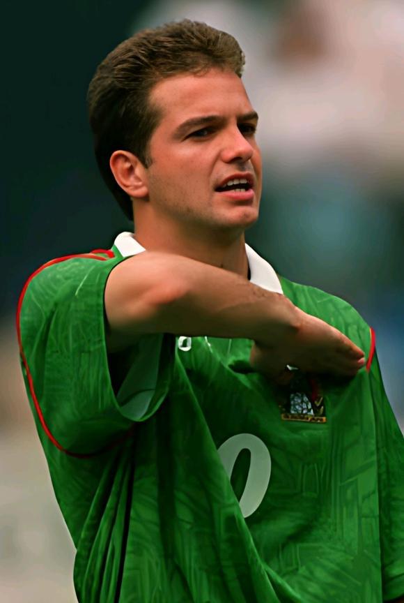 第六位:路易斯·加西亚,效力于墨西哥美洲队和马竞队,3次加冕墨西哥联赛最佳射手,代表墨西哥出场77次,攻入28球,94年世界杯是其职业生涯的高光时刻,在小组赛墨西哥对阵爱尔兰的关键战中他梅开二度,帮助球队小组出线。