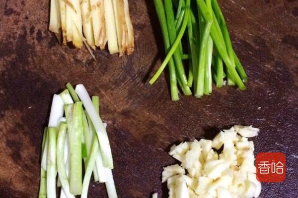 4.这时候准备,葱,姜、蒜清洗切好备用。