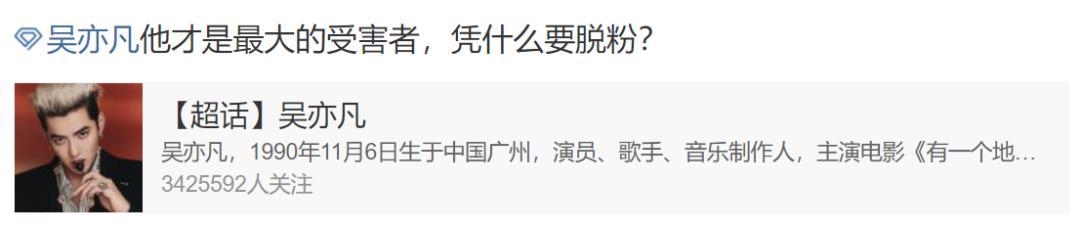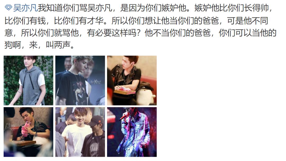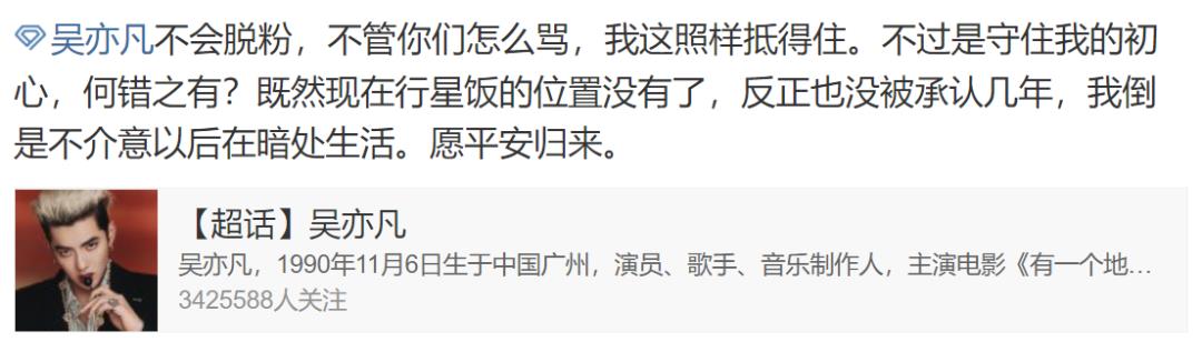 虽然很想劝某些人重修语文,提高阅读理解能力,不过进了吴亦凡的超话以后,才顿悟:大概大家的阅读理解都是封神级别,一般人比不了。