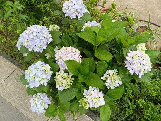 绣球花喜阴,春季出室后需先放置在半阴环境中养护,盛夏季节移至通风良好的阴凉处,防止叶片发生日灼病。九月以后光照强度日渐减弱,为促进花芽分化,应将花盆移至光线较多的地方。