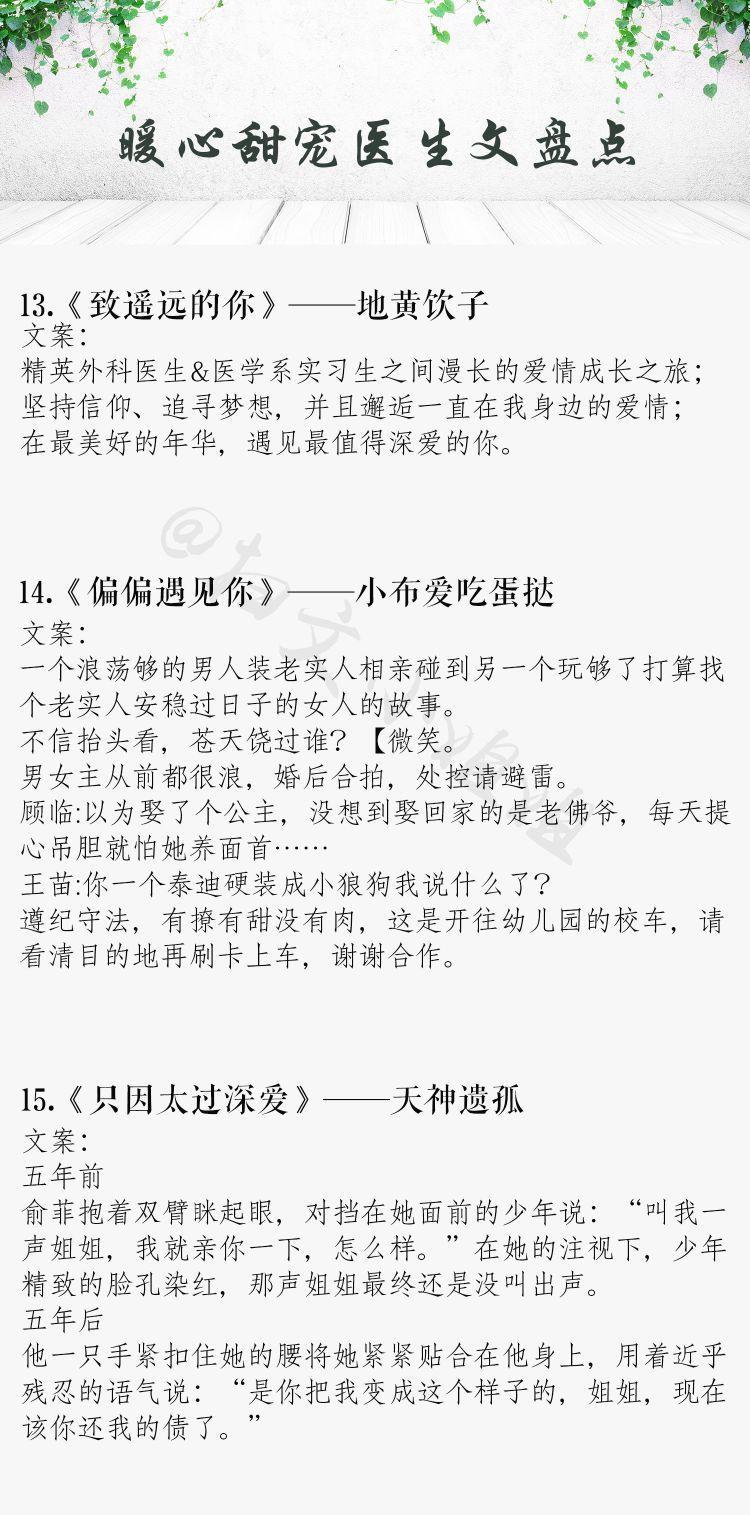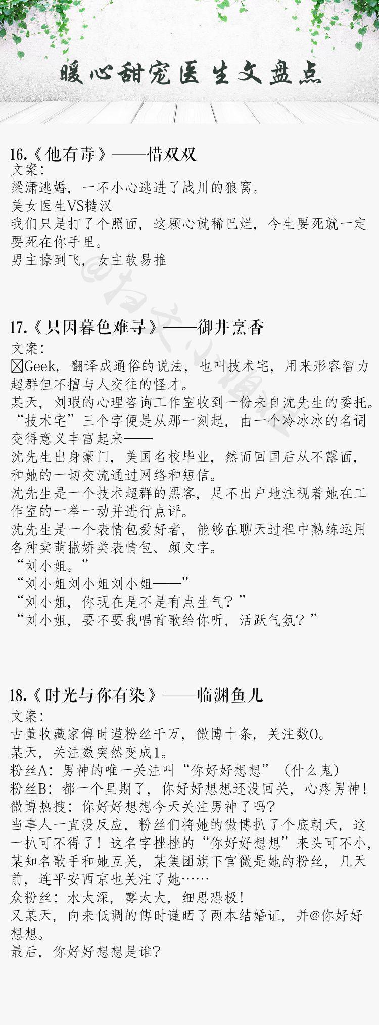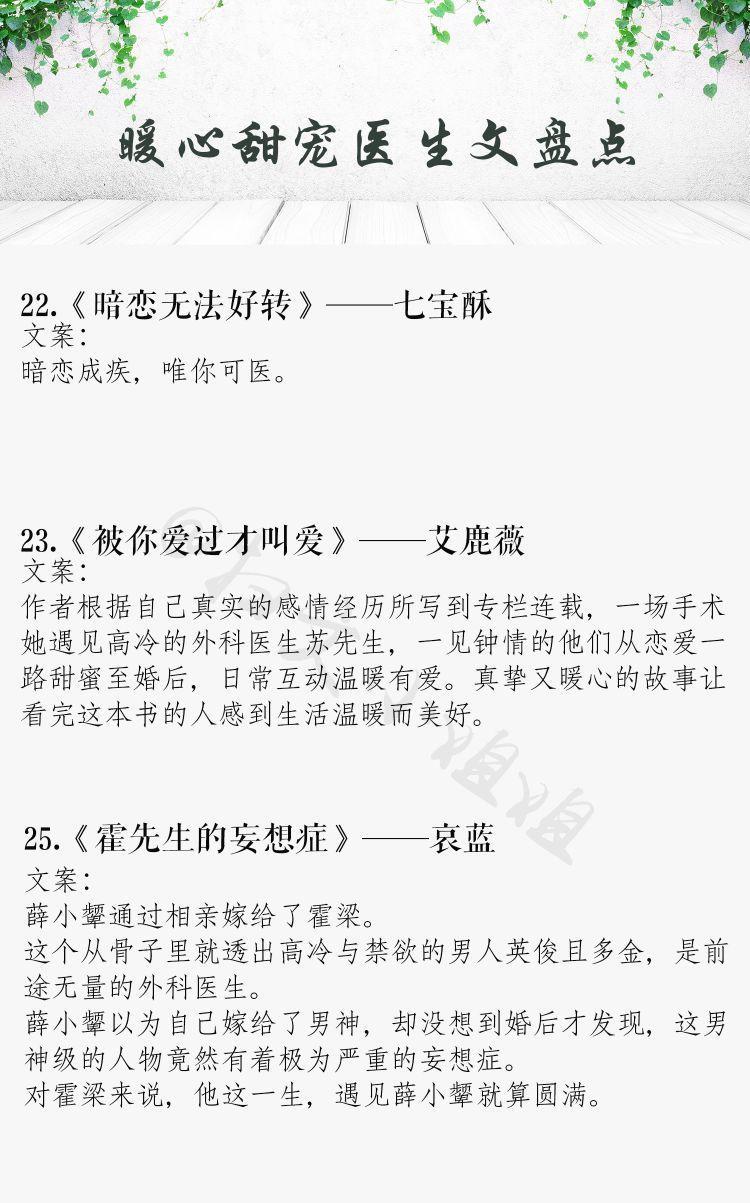 今天推荐一批高甜医生男主系列文,恪尽职守,医者仁心,禁欲又撩人。外表高冷儒雅的医生男主,真的是苏炸了!