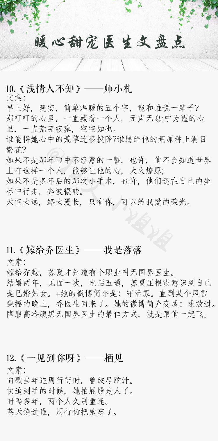 今天推荐的这些医生文真的很好看,干净修长的手,整洁的白大褂,满满的禁欲气息。满足了我对医生男朋友的所有幻想……