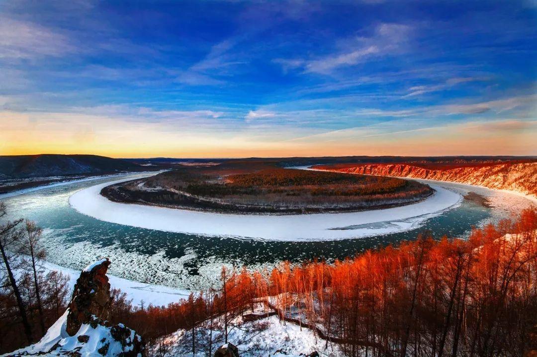 这样的景色是不是很美呢?能够看到这么美丽的景色,冷一点你是不是也愿意啦!除了“泼水成冰”,漠河北极村有很多和北相关景点,如最北一家、最北邮局、最北民俗馆、最北银行、最北点等等。在北极村也还有很多有趣好玩的体验,如乘坐马拉爬犁,滑雪、滑冰、堆雪人、行走封冻龙江、体验冬捕、睡特色火炕、吃特色大锅、游玩冰雪乐园等等。冬季的漠河之行一定会让你不虚此行。