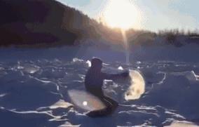 泼水时候一定要用力,也可以加一些自身跳跃的动作。如果担心水落到身上,可以在身体的一侧泼出。这样的C字型泼除了制造美感也是为了加长水到达地面的时间,在零下40°的环境,开水这样用力泼出,先是生出大团雾气,然后就变成无数冰箭射向四方。