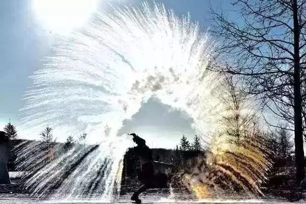 2.泼出去的应该90度以上的水,想必你会大吃一惊,不是冷水更容易泼水成冰吗?其实不然,结成冰的并不是水,而是水中的水蒸气。热水周围含有大量的水蒸气,当水蒸气遇到温差较大的环境时,会迅速地降温凝华成为冰晶。不过,在凝结过程中,除了温度之外,决定它是否结冰的关键还有水汽的颗粒大小。