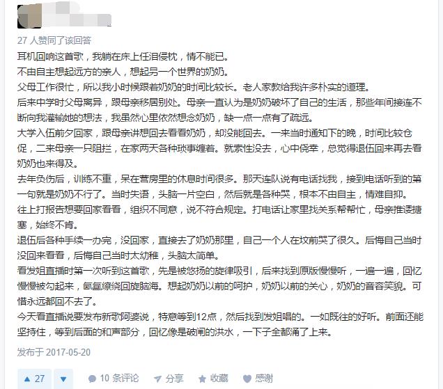 在直播间听了好多遍,不用听,直接就可以上评论。还有人提前想怎么评论。相比于那些正儿八经的歌手,陈一发儿更接地气,我们在直播间看她学会这首歌,越唱越好,看着她去北京录歌,等了这么长时间终于等到新歌上线。就像看着一个孩子从襁褓不断长大,发布也就相当于它的成人礼,为什么我们不能给他最好的祝福。