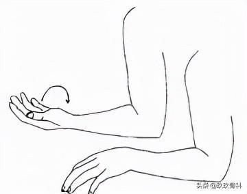 6.手腕屈曲运动:用手掌握住圆形重物0.5kg,向上弯曲手腕,慢慢降低并返回起始位置,重复10次,做3组,每组10次,随着症状改善,逐渐增加手持重物的重量致1.5kg。