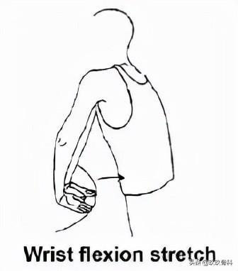 B.伸展:轻轻向后弯曲手腕,保持这个姿势5秒钟,重复10次,做3套。