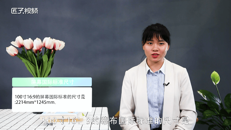 100寸16:9的屏幕国际标准的尺寸是:2214mm*1245mm。屏幕尺寸也称为屏幕分辨率,即把LCD格数除以屏幕面积得到的就是屏幕分辨率,这个指标是决定画面好坏的最大因素。