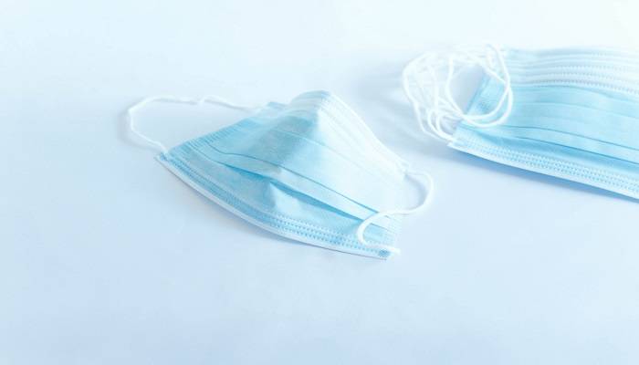 1、脱下口罩时,双手同时把两只耳朵上的弹力绳取下;