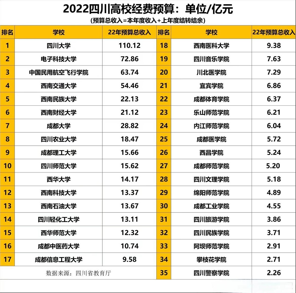 在2022年四川省高校预算汇总统计中,成都大学的经费总预算,竟达到了“令人恐怖”的28.82亿!