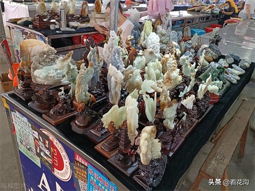 36.镇平县的地方特产-镇平玉雕。镇平县的先民们从4000多年前的新石器时代就开始了磨玉,宋元两代玉雕产业渐成规模。1995年3月,这里被中国农业部等5部门联合命名为“中国玉雕之乡”,玉雕产品的品种,可分为人物、花鸟、走兽、器物等四大类,人物造型多取材神话传说、古代戏曲故事。花鸟有百鸟朝凤、喜鹊闹梅凤凰牡丹、长尾鸟屏等23种;走盖有狮、象、虎、牛、套马等16种;器物有玉城、玉环、转炉、飞禽、走兽、人物等,雕技精湛,刀法复杂,寓意深刻;素活有戒指、手镯、耳环等。