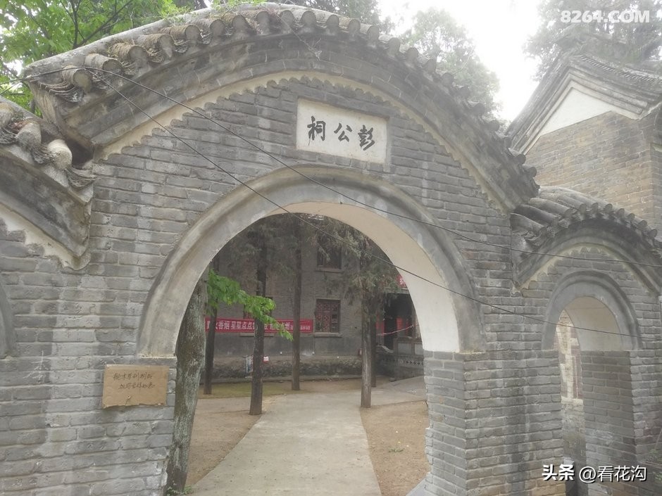 24.镇平县的著名景点-彭公祠。系民国宛西自治倡导人彭锡田的祠堂。彭锡田,字禹廷,镇平县安子营乡七里庄人。民国16年他从冯玉祥部返乡倡导地方自治,清剿匪患,为官清正,关心百姓疾苦,靠强硬政策把为当时镇平治理得“路不拾遗,夜不闭户”,深受社会各界好评。其死后,宛西三县群众为了纪念这位民国自治领袖,在杏花山虎山沟为他修建纪念地,立祠奉祀。彭公祠建于民国23年,祠堂主房占地60平方米,高6米,入约深7米,面阔11米,单檐硬山式建筑,用青砖砌筑,每块砖上均刻有“彭公祠”三字,祠内挂有当时社会名流冯玉祥、于右任等撰写的挽联。祠堂的左厢有房舍十余间,两层结构。右侧有廊房八间,廊壁上记述彭公的生平事迹。