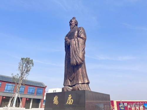 31.镇平县的名胜古迹-卢医庙大殿。卢医古庙现存卢医庙大殿及两侧廊坊。大殿深三广五,单檐歇山,四角起翘,抬梁柱式,檐式斗拱,灰色铜瓦。卢医大殿为宫殿式风格,砖木结构,圆木杰柱,九架九檩,筒瓦拱顶,檐牙飞翘,风钟悬挂。殿内雕梁画栋,中间塑有扁鹊和孙思邈的神像,两侧分别是岐伯、华佗、王叔和、葛洪、陶弘景、朱丹溪、李时珍等。内壁绘有“扁鹊见蔡桓公”、“张仲景坐堂行医”、“孙思邈坐虎针龙”、“华佗刮骨疗毒”等壁画。卢医古庙前有“八”字墙,东边的碑墙有碑文记述着卢医庙的身世变迁。西边的碑墙是河南省文联副主席二月河题写的“悬壶之祖”四个大字。